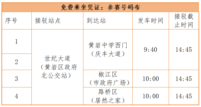 参赛选手凭参赛号码布免费乘车