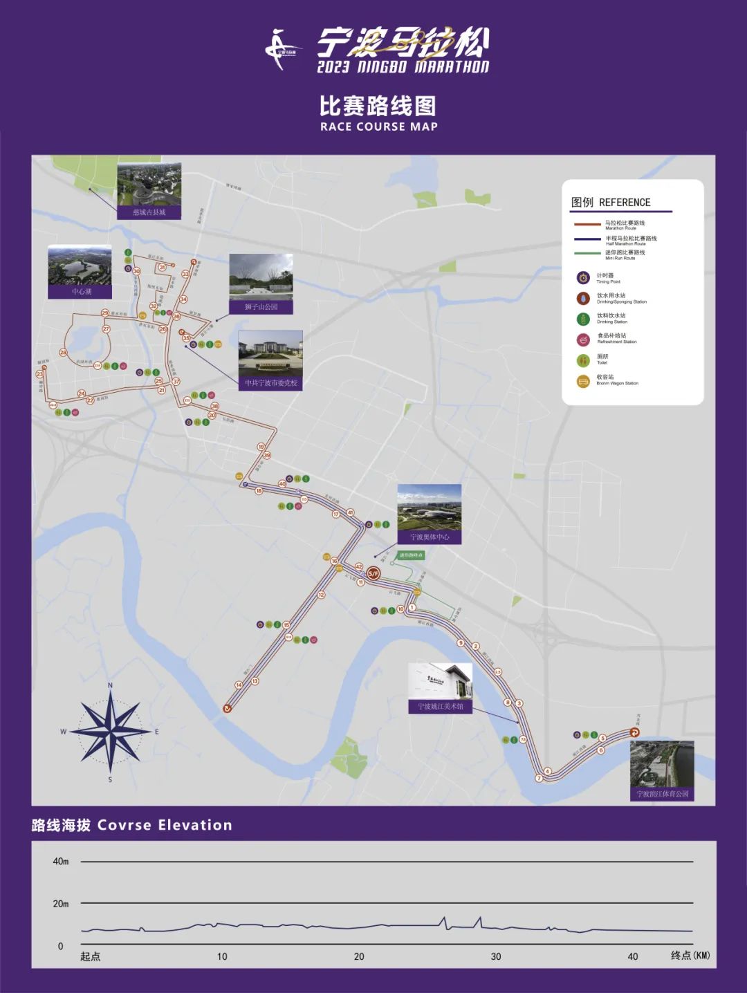 发布会上用动画视频演绎的形式介绍了详细路线。今年宁波马拉松的起终点都设置在宁波奥体中心,途径宁波滨江体育公园、慈城新城中心湖、官山河等地,是一条充满文化底蕴和现代活力的比赛线路。