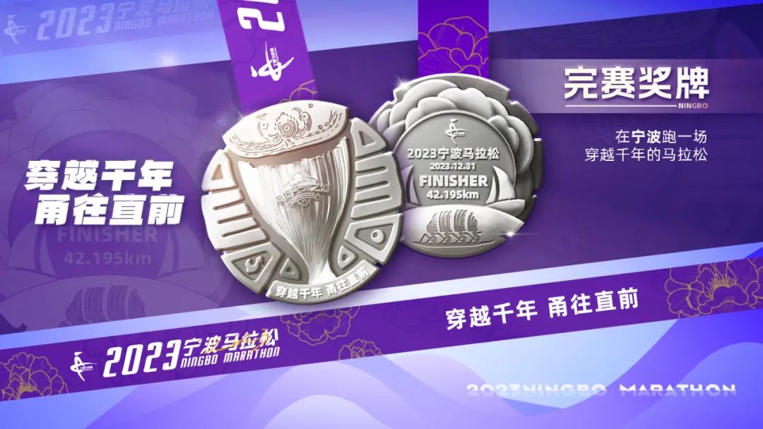 今年的马拉松提出了一个全新的主题口号“穿越千年 甬往直前”。“穿越千年”代表着马拉松比赛的坚韧不拔和持之以恒,参赛者们需要具备超凡的毅力和耐力,才能完成这场挑战自我、超越自我的比赛,从宁波的千年古文化出发,穿越历史的长河,跑者可以一路感受宁波历史文化的厚重和传承。而“甬往直前”则代表着勇往直前、敢于拼搏的精神,这是宁波人民在城市发展中展现出来的鲜明特色,也是宁波成为全国单项冠军之城、奥运冠军之城的基石。这一口号既体现了马拉松比赛的精神,也展示了宁波这座城市的独特气质和拼搏精神,它寓意着宁波城市的发展如跑马一样永不止步,奋勇争先,也鼓舞着每一个参赛者和观众迎难而上,用拼搏和奋斗书写自己的辉煌篇章。