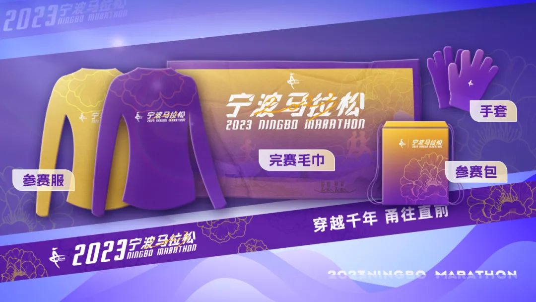 今年宁波马拉松服装设计上进行了大胆的创新,以紫色、金色为主要色调,全程、半程选手的参赛服为紫色,迷你跑选手为金色,参赛包也在主视觉的基础之上,进行了延展。除此之外,考虑到比赛日当天气温较低,组委会为每位参赛选手准备了长袖样式参赛服,以及保暖手套。
