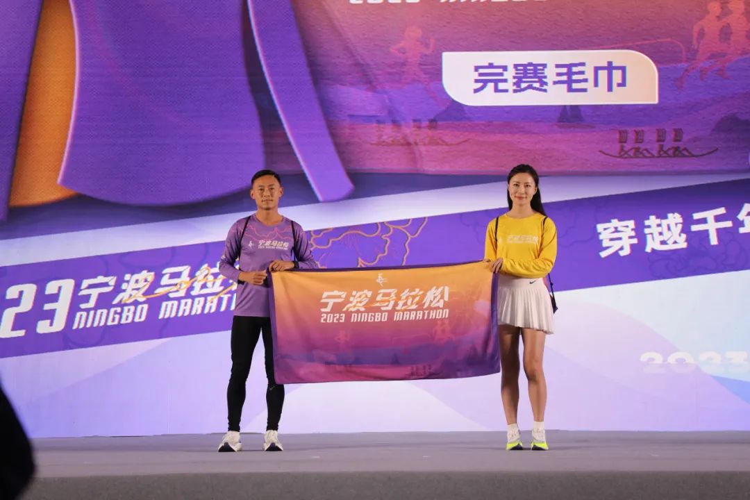 随后,江北区人民政府副区长邹刚介绍了赛道沿线特色及服务。此次赛道全程设在宁波江北区内,赛道从奥体中心出发,沿母亲河姚江而行,跨越千年古运河官山河,经过慈城新城来到慈江畔,如画卷般向大家展示宁波城市发展与滨江风光,体验古运河的文化底蕴和魅力。同时,在沿途的氛围营造上,江北区还将组织啦啦队、器乐演奏、歌舞等表演,让跑者边奔跑边享受音乐艺术带来的愉悦。另外,江北区还为每一位马拉松跑者准备了专享大礼包,实现“来比赛住江北享服务”。礼包里面包含慈城古县城、保国寺、达人村、绿野山居四大景区从12月28日到1月5日免费开放、辖区内酒店住宿和餐饮大优惠等,甚至部分酒店还会为比赛跑友提供免费专车接送服务。