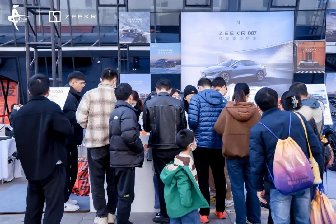 马拉松赛道旁极氪展台,人气火爆
